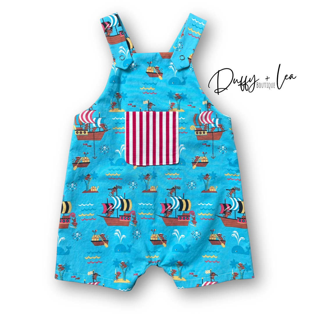 Dress your little one in style with our Pirate Monkeys Romper! Made from 100% cotton, this aqua romper features a playful pirate monkey print. The Kam open ring snaps strap closure and snap panel make it easy to put on and take off. Versatile for layering or wearing on its own. Ahoy matey!